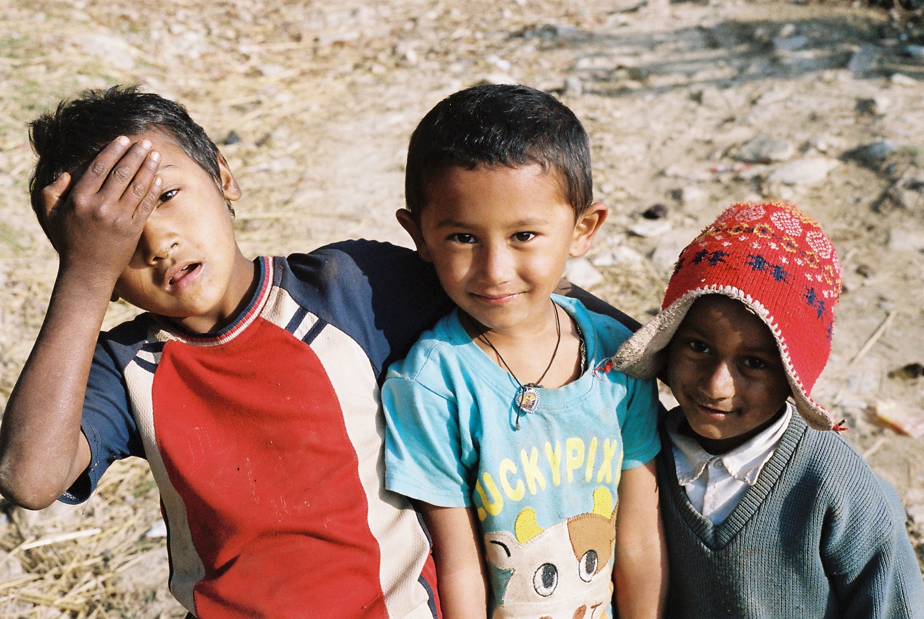 トレッキング中に何かの集会から帰ってきた子供達の集団、我々にたいしてもオープンで人なつっこいのが見てよくわかる。